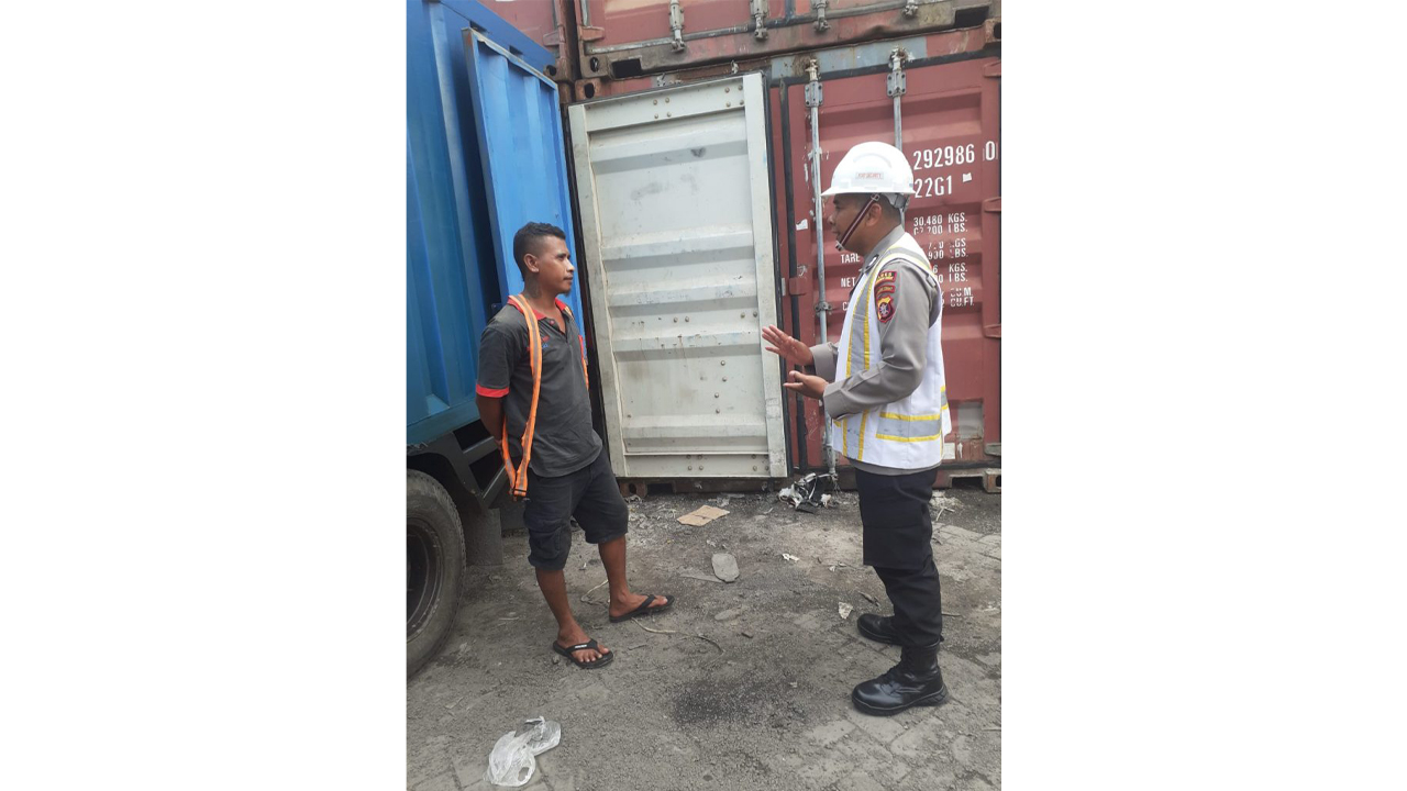 Pangkalan Bun, infokalteng.co.id – sebagai upaya menciptakan sitkamtibmas yang aman dan kondusif khususnya dibidang investasi perekonomian Kabupaten Kotawaringin Barat serta mencegah terjadinya kecelakaan kerja di wilayah pelabuhan Kalap Bumiharjo Kumai personel satbinmas Polres Kobar memberikan himbauan keselamatan kerja kepada buruh Pelabuhan Bumiharjo Kel. Kumai Hulu Kec. Kumai Kab. Kobar, Senin (9/10) pagi