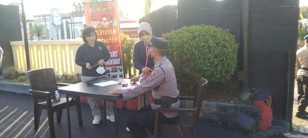 Kapolres Kotawaringin Barat AKBP Bayu Wicaksono, S.H., S.I.K., M.Si. melalui Kasatbinmas Iptu Dwi Gatot Asmoro mengatakan, kegiatan pelayanan kesehatan yang diberikan berupa pemeriksaan tensi, cek suhu tubuh.