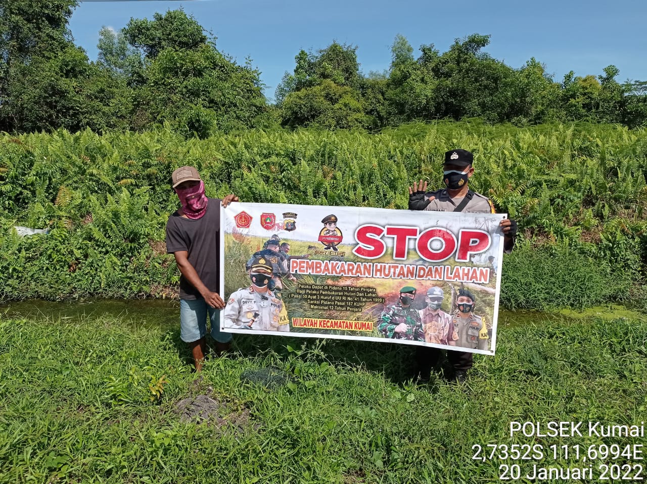 Pangkalan Bun, infokalteng.co.id – Personil Polsek Kumai, jajaran Polres Kotawaringin Barat (Kobar), Polda Kalteng terus imbau warganya cegah Karhutla di Sekitar Desa Sungai Kapitan Kec. Kumai, Jumat (21/1) siang.