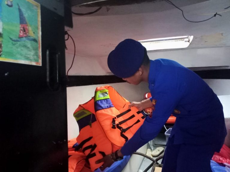Pangkalan Bun, infokalteng.co.id – Anggota Satpolairud Polres Kobar tengah melakukan pengecekan terhadap peralatan keselamatan diri berupa life jacket ( rompi pelampung ), Selasa 2 Mei 2023.