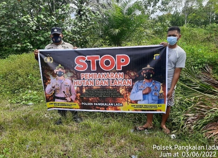 “Kapolres Kotawaringin Barat AKBP Bayu Wicaksono, S.H., S.I.K., M.Si. melalui Kapolsek Pangkalan Lada .AKP AGOES TRIGONGGO, SH. mengatakan ” Kami memberikan Sosialisasi agar semakin bertambah wawasan dan teredukasi dan juga sekaligus memberikan imbauan agar tidak membakar hutan dan lahan guna mengurangi dampak dari pembakaran lahan yang bisa merusak alam serta mengganggu kesehatan masyarakat, Sabtu (4 juni 2022) siang.