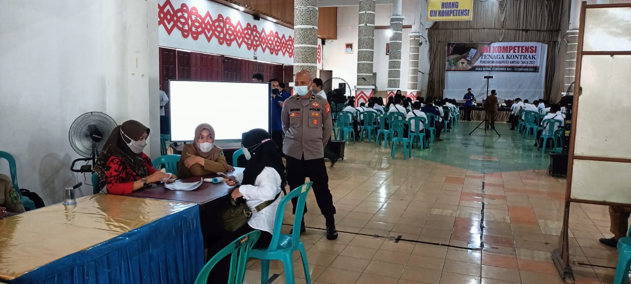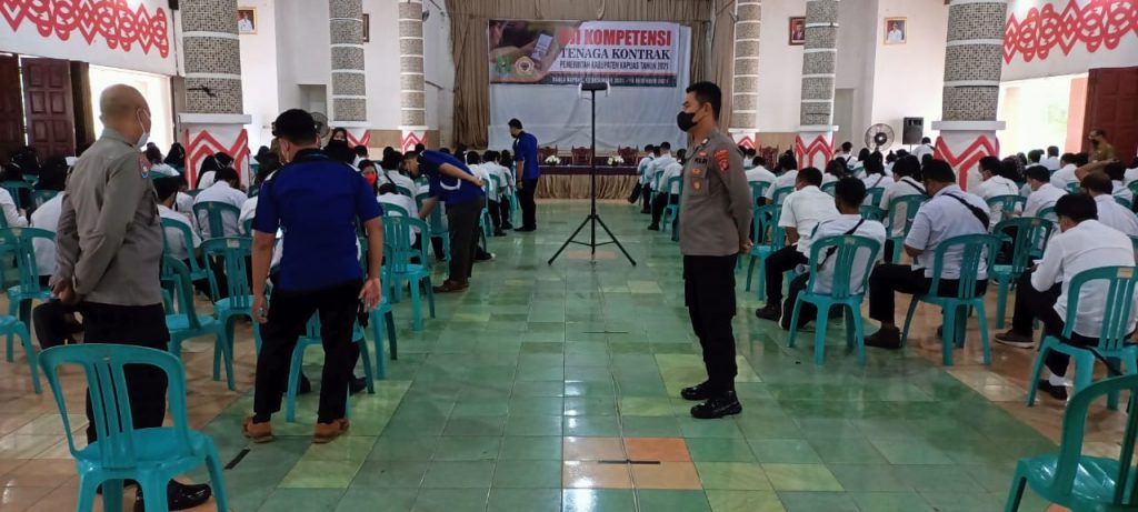Kuala Kapuas, infokalteng.co.id – Polres Kapuas, Polda Kalteng ikut amankan kegiatan Kompetensi Tenaga Kontrak Pemkab Kapuas Tahun 2021 Hari Ke-2 bertempat di Aula Setda Pemkab Kapuas, Jl. Pemuda KM. 5,5 Kapuas, Selasa (14/12) pukul 07.00 WIB.
