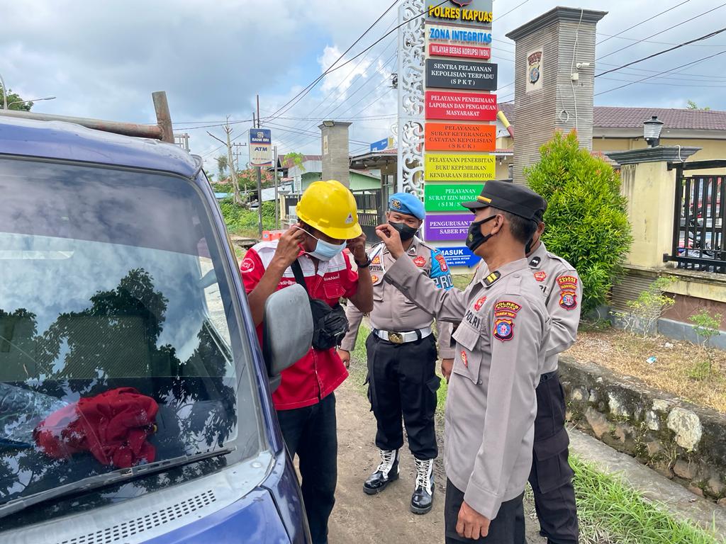 Dalam operasi yustisi yang digelar di Jl. Pemuda Km. 3,5 tepatnya di depan Mako Polres Kapuas, personel yang terlibat dalam Operasi Yustisi mengingatkan masyarakat yang kedapatan mengabaikan protokol kesehatan (prokes) dan membagikan masker.