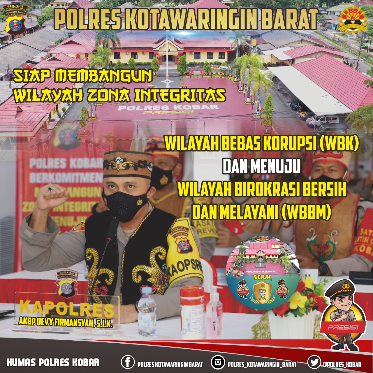 “Seluruh personil Polri wajib menjaga predikat Wilayah Bebas Korupsi (WBK), dan mewujudkan Wilayah Birokrasi Bersih Melayani (WBBM), pada Institusi Kepolisian di Kabupaten Kobar,” tegasnya saat dikonfirmasi via whattsapp pada Sabtu (18/12) siang.