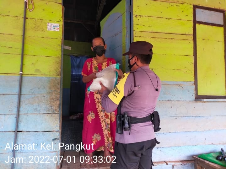 Pangkalan Bun, infokalteng.co.id – Polsek Arut Utara (Aruta) jajaran Polda Kalteng Personil Polsek Aruta rutin bagikan sembako setiap Jum’at kepada masyarakat yang terdampak Covid-19 dan kurang mampu di Kel Pangkut Kec Aruta Kab Kobar Prov Kalteng. Jum’at (01/07/2022) pagi.