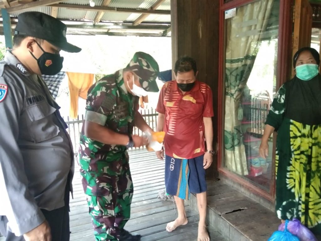 Saat pemberian bantuan, Bripka I Wayan Jaya Astawan yang mengikuti kegiatan sempat menanyakan kondisi terakhir warga yang diberi bantuan.