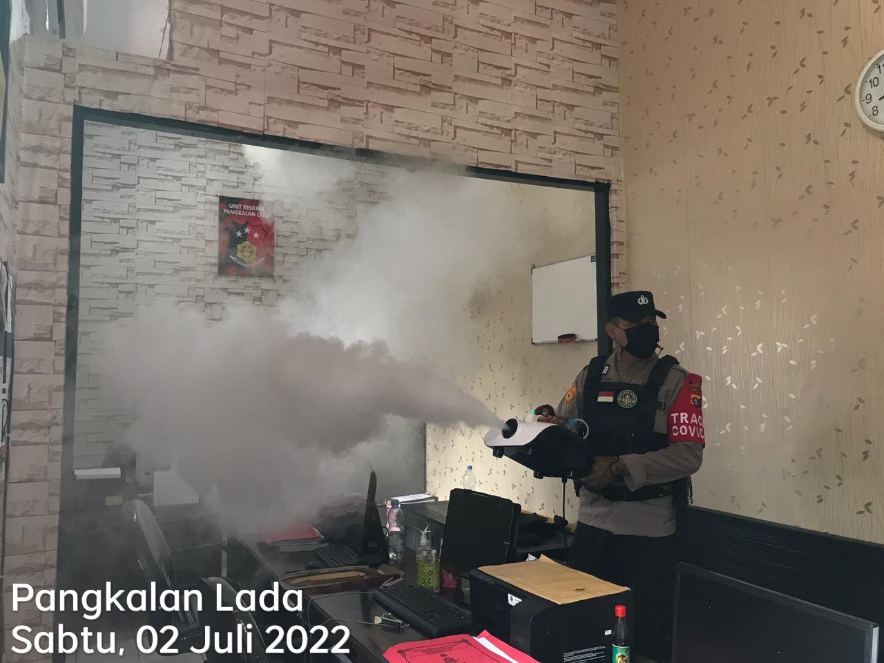 Pangkalan Bun, infokalteng.co.id – Guna mencegah penyebaran di internal Polsek Pangkalan lada, Polres Kotawaringin Barat Jajaran Polda Kalimantan Tengah laksanakan penyemrpotan vogging pada ruangan kantor.