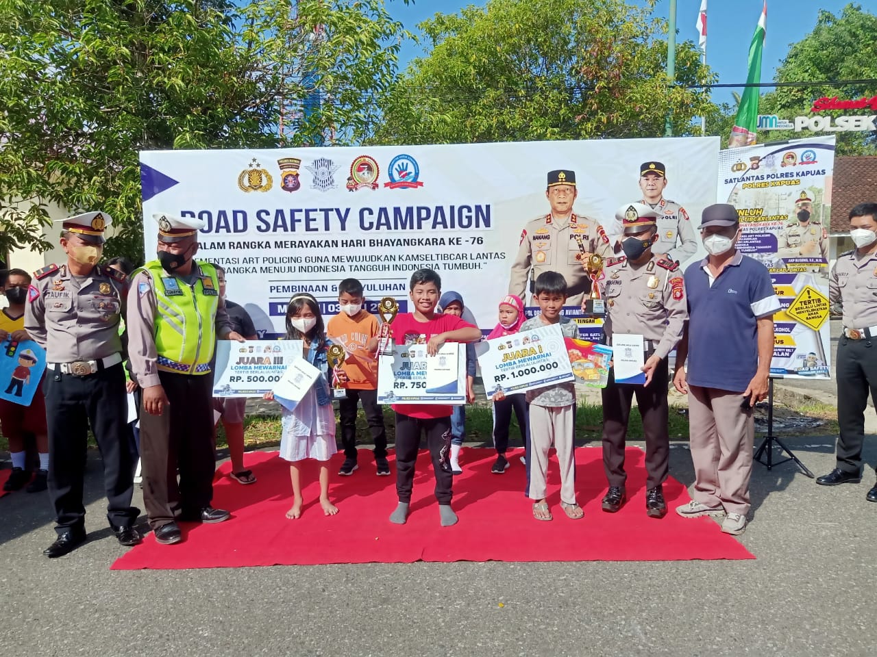 Khusus dalam lomba mewarnai peserta di ikuti dari perwakilan beberapa sekolah tingkat SD yang berada di Kota Kuala Kapuas, anak anak sangat antusias mengikuti lomba yang di adakan Satlantas Polres Kapuas tersebut, tidak hanya itu, Satlantas juga memberikan hadiah menarik untuk pemenang lomba, yaitu pemenang juara 1 mendapatkan uang pembinaan sebesar 1 juta Rupiah beserta trofi, juara 2 sebesar Rp. 750.000 beserta trofi dan juara 3 sebesar 500.000 beserta trofi, tidak hanya pemenang yang mendapatkan hadiah, seluruh peserta juga di berikan hadiah hiburan oleh panitia.