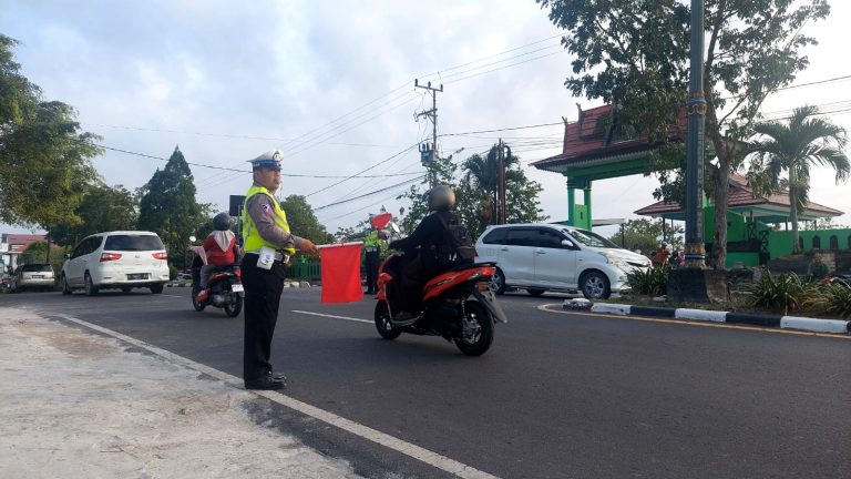 Pangkalan Bun, infokalteng.co.id – Sudah menjadi kegiatan rutin di setiap hari Jumat ada aktivitas masyarakat berziarah di TPU Skip, untuk menjaga Kamseltibcarlantas yang aman dan nyaman Satlantas Polres Kotawaringin Barat jajaran Polda Kalteng menempatkan personelnya untuk melaksanakan pengaturan arus lalu lintas, Jumat (04/08) pagi.