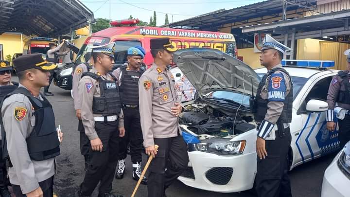 Usai melaksanakan apel, Kapolres Kotawaringin Barat didampingi PJU melakukan pengecekan sarana dan prasarana berupa kendaraan Dinas Polres Kobar roda dua maupun roda empat serta peralatan penunjang lainnya yang nantinya akan dipergunakan dalam kegiatan pengamanan perayaan Natal dan Tahun Baru.