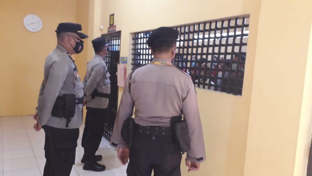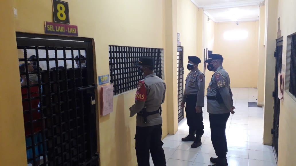 Kapolres Kotawaringin Barat AKBP Bayu Wicaksono, S.H., S.I.K., M.Si melalui Kasat Sampta AKP Kustiyanto setelah pelaksanaan apel serah terima piket fungsi. Anggota samapta yang melaksanakan piket laksanakan pengecekan dan kontrol rutin tahanan di Rutan Polres Kobar bersama fungsi yang terkait.