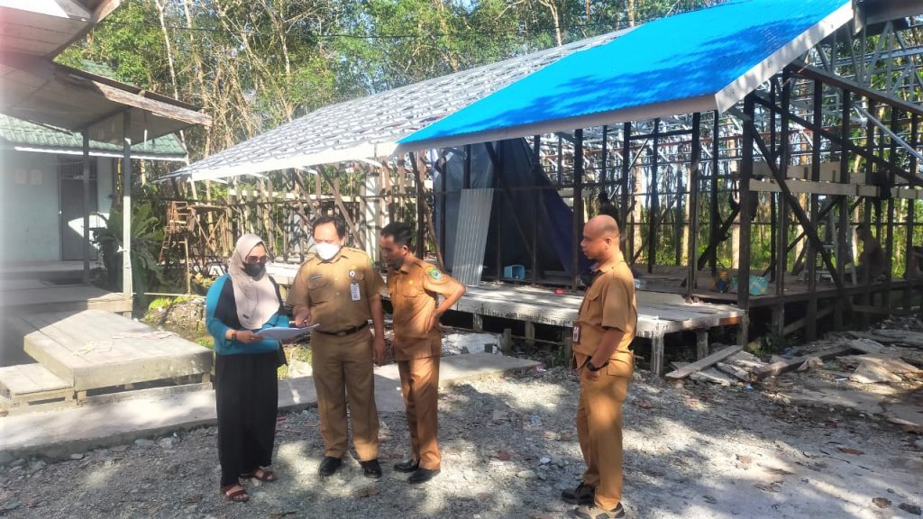 Kadisdik Kapuas H. Suwarno Muriyat didampingi Kabid Pembinaan SD dan Kabid Pembinaan Ketenagaan yang diterima oleh Jemy Damayanti selaku Kepala SDN 5 Anjir Mambulau Barat saat meninjau pelaksanaan rehabilitasi menyatakan terima kasihnya kepada Danone Indonesia, Selasa (25/1) sore.