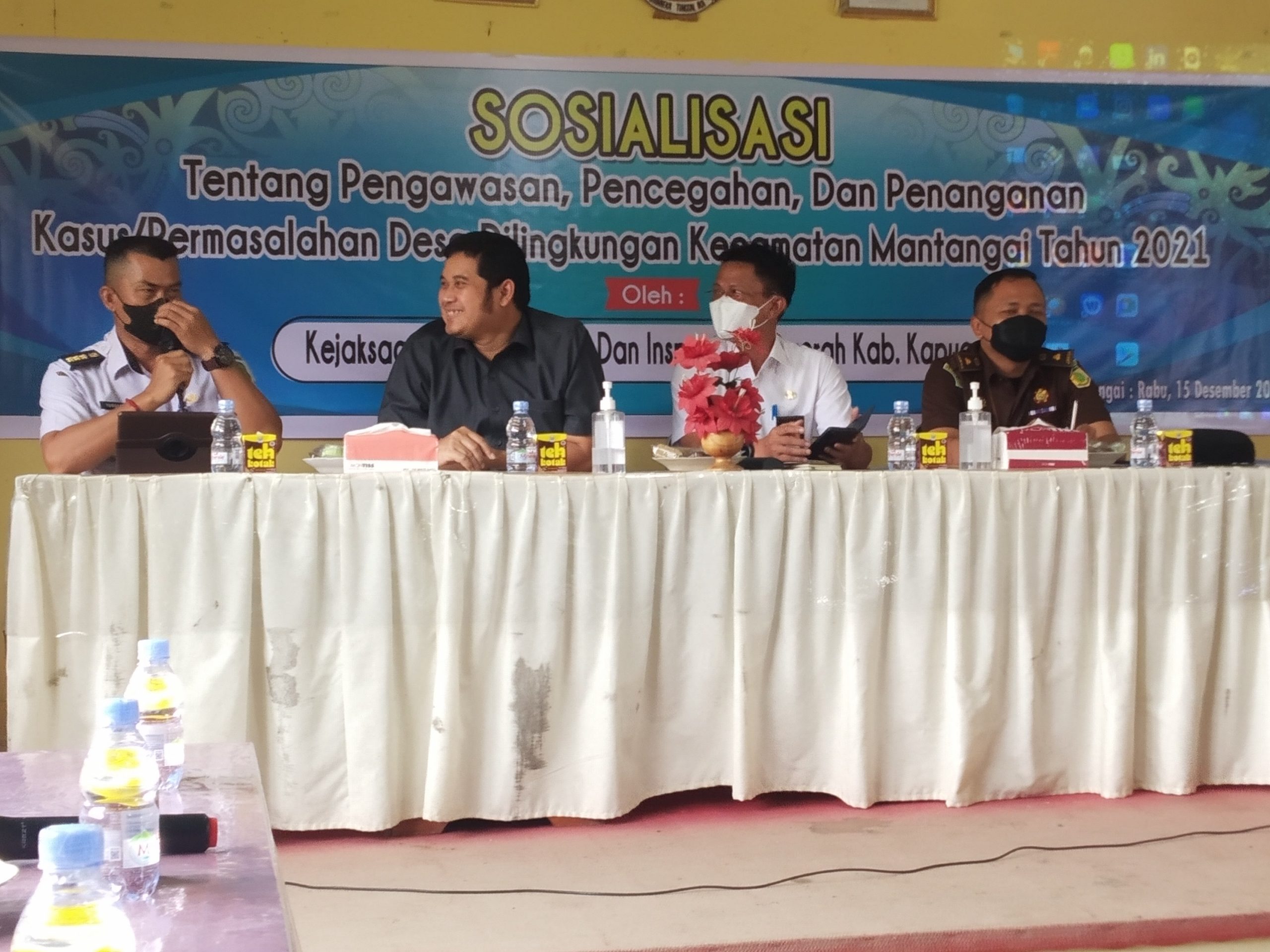 Kuala Kapuas, infokalteng.co.id – Bertempat di Kecamatan Mantangai, dilakukan kegiatan Sosialisasi Pencegahan dan Penanganan kasus/permasalahan Desa di Lingkungan Kecamatan Mantangai yang dihadiri oleh Inspektur Kabupaten Kapuas Heri Bowo, Kejaksaan Negeri Kabupaten Kapuas, Kapolsek Mantangai, Koramil 1011-08 Mantangai, Damang Kepala Adat Kecamatan Mantangai, 38 Kepala Desa/Pj. Kepala Desa, Sekretaris Desa dan Bendahara Desa di wilayah Kecamatan Mantangai.