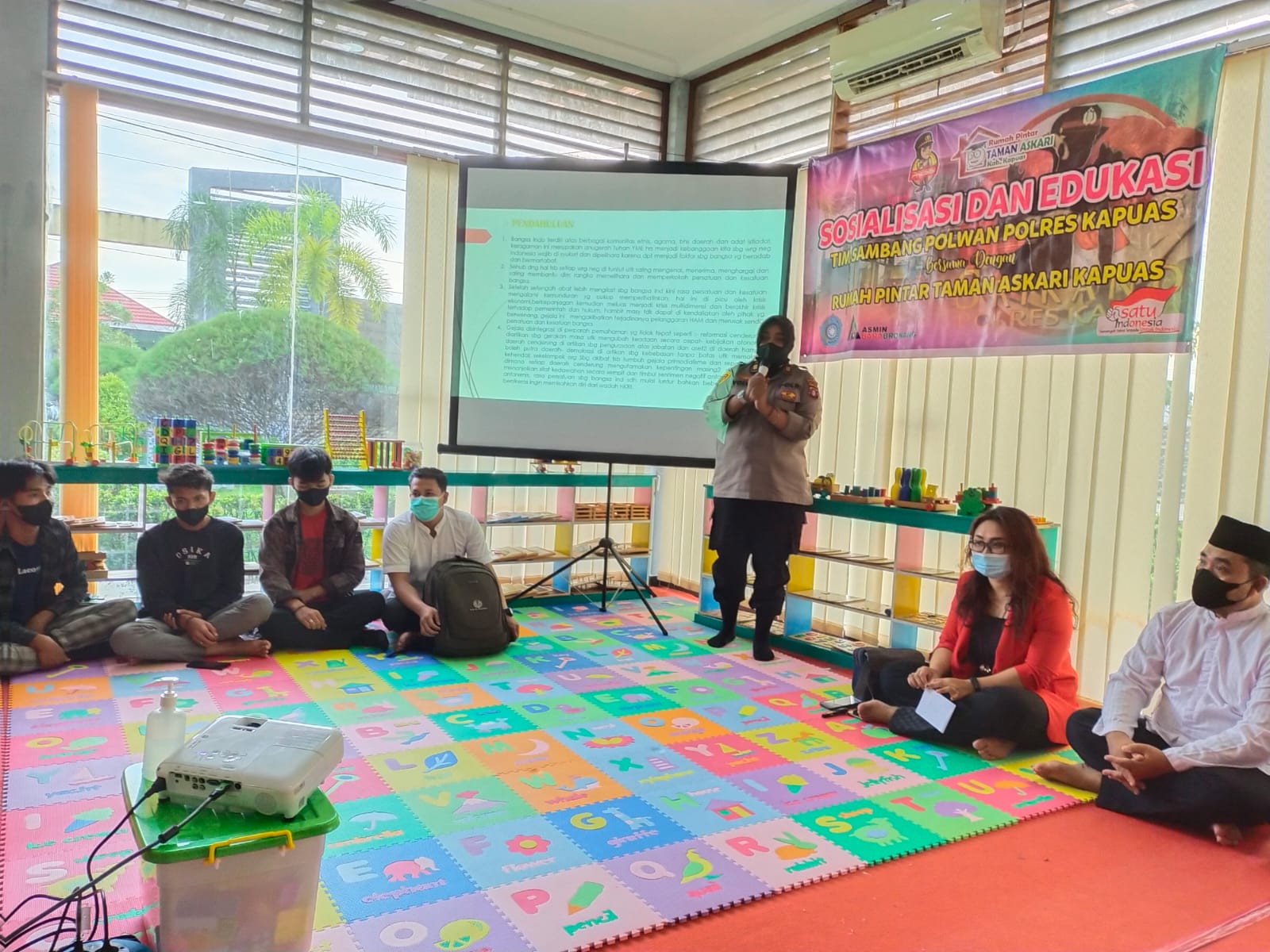 Kuala Kapuas, infokalteng.co.id – Salah satu progam unggulan Polres Kapuas yaitu Hasupa Hasundau Sambang Polwan Polres Kapuas kembali melakukan sambang dan sosialisasi kamtibmas, kali ini sosialisasi diberikan kepada generasi muda Kab. Kapuas yaitu Duta Pariwisata Kabupaten Kapuas dan Kelompok Pecinta Alam Kabupaten Kapuas, Kamis (7/4/2022) sore.