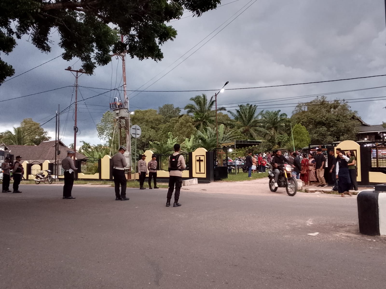 Personel gabungan ini melakukan pemantauan situasi di sekitar gereja, pengaturan arus lalu lintas serta memastikan pelaksanaan ibadah paskah berjalan dengan hikmah tertib dan lancar.