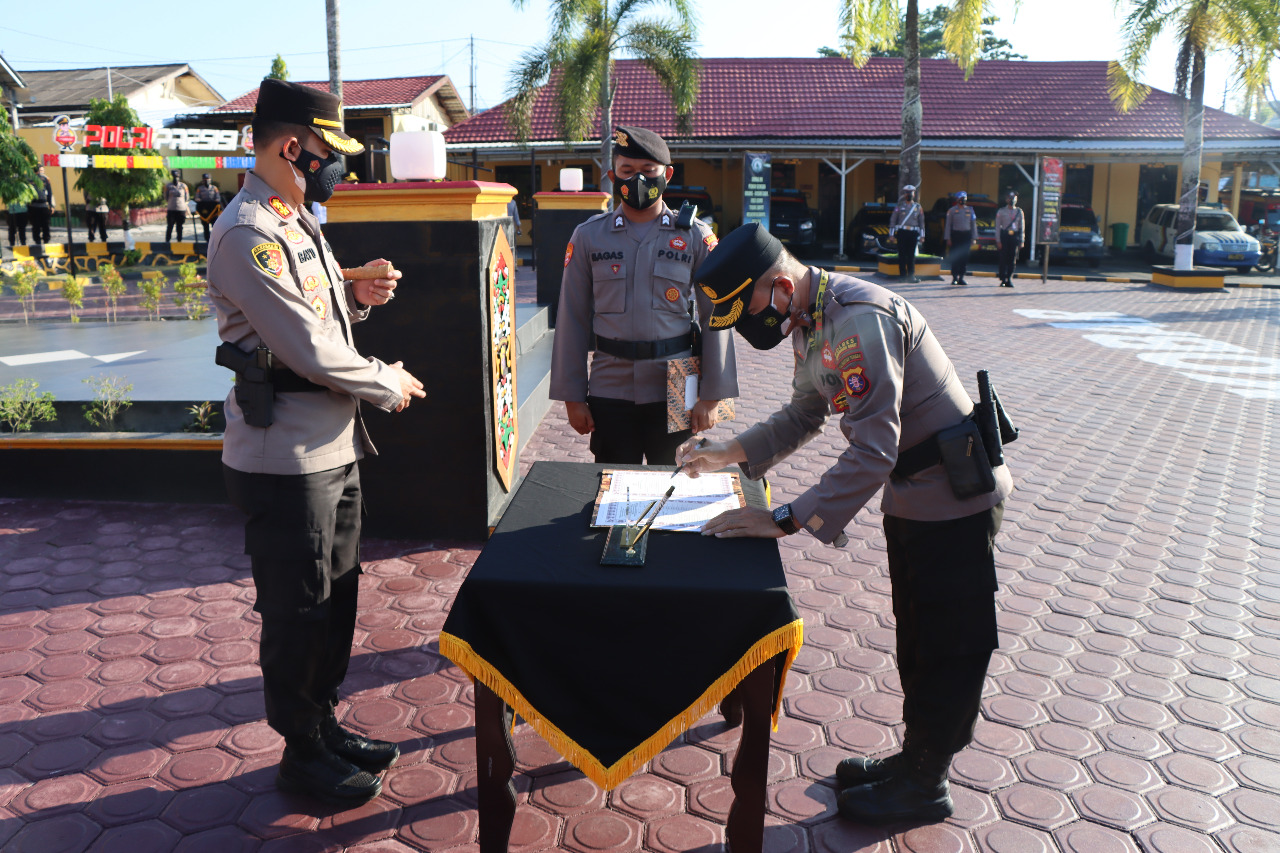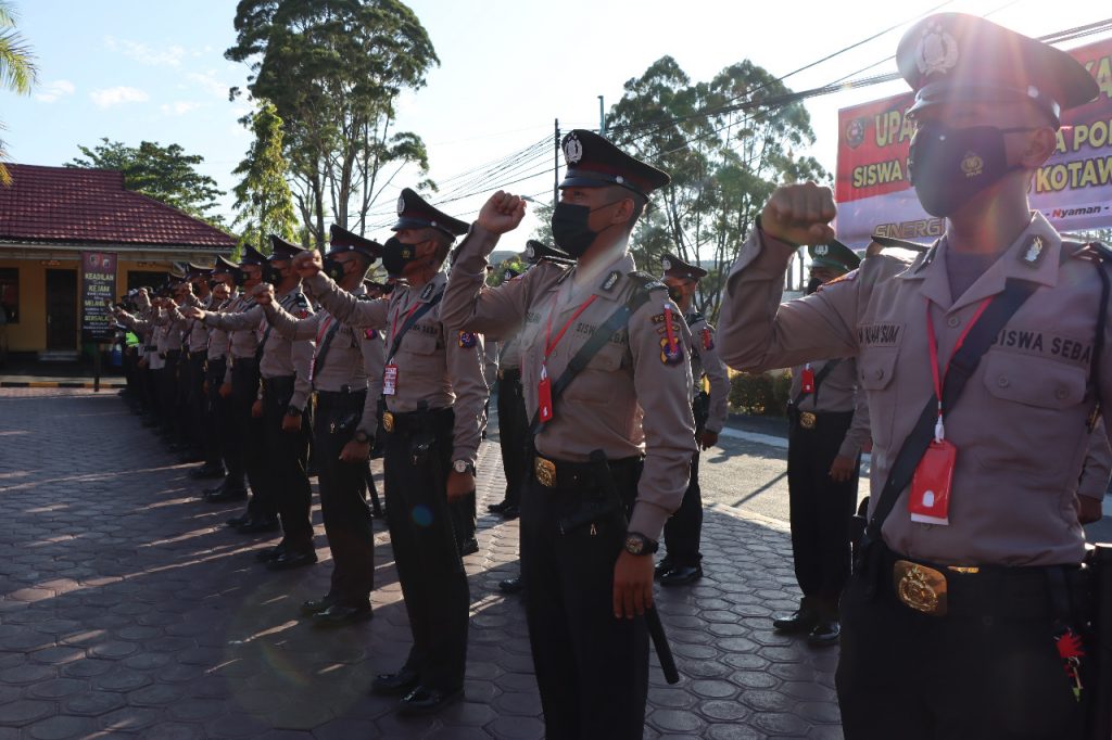 Bertempat di Lapangan Apel Polres Kobar, Kapolres Kobar AKBP Bayu Wicaksono, S.H,. S.I.K., M.Si. memimpin Apel Upacara pembukaan siswa pendidikan polri dari SPN Palangkaraya yang akan melaksanakan Magang atau Latihan Kerja di Polres Kotawaringin Barat. Jumlah siswa pendidikan Polri yang akan melaksanakan magang di Polres Kotawaringin Barat sebanyak 27 orang dengan didampingi Instruktur tenaga pendidik sebanyak 2 orang. Siswa Magang ini akan melaksanakan magang di Polres Kotawaringin Barat selama 1 bulan, Kamis (2/6/2022) pagi.