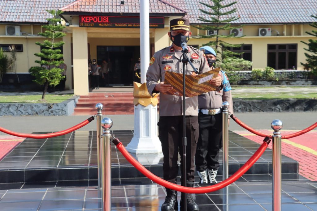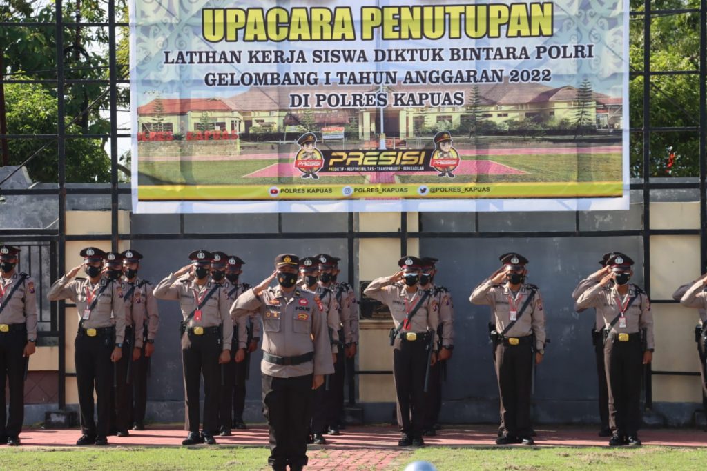 Kuala Kapuas, infokalteng.co.id – Kapolres Kapuas AKBP Qori Wicaksono, S.I.K yang Diwakili Wakapolres Kapuas Kompol I Kadek Dwi Yoga S.W S.H., S.I.K, memimpin apel penutupan latja dan penyerahan siswa diktuk Bintara Polri Gelombang I Ta. 2022 SPN Polda Kalteng di Polres Kapuas Polda Kalteng yang telah selesai melaksanakan Latihan Kerja ( Latja ) di Polres Kapuas yang dilaksanakan selama kurang lebih 23 hari, Sabtu (25/6/2022) pagi.